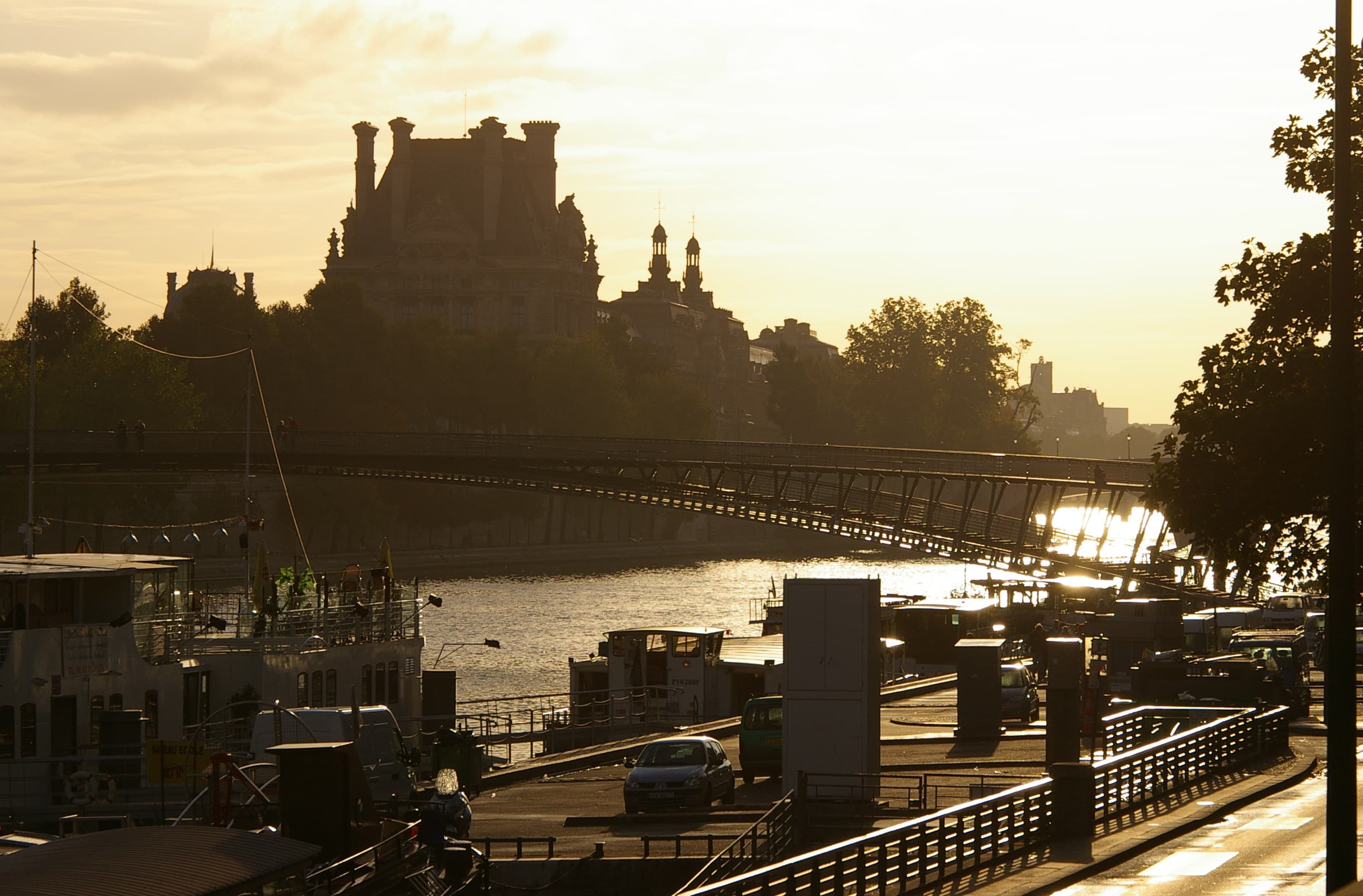 たくさんの観光客を見下ろしている化け物は階段を登らないと会えない 眼下にはセーヌ川と 遠くにエッフェル塔が見える
