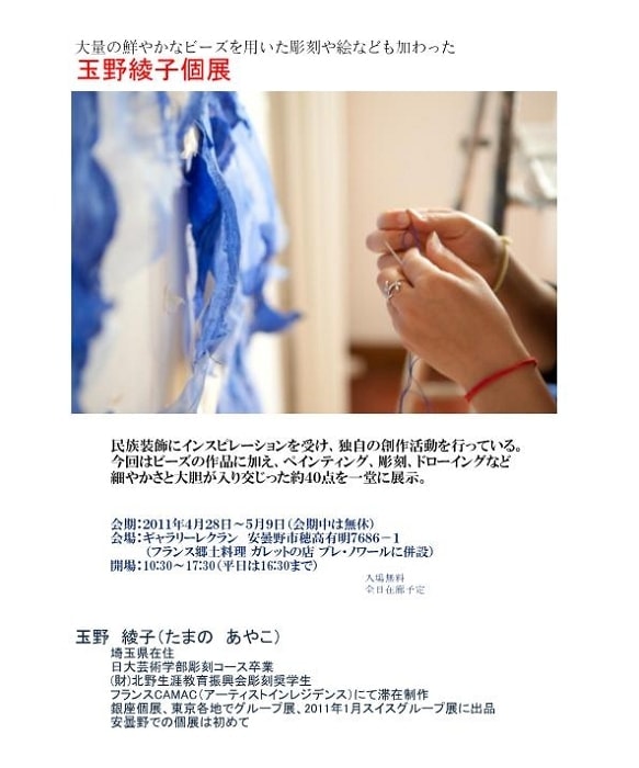 銀座個展、東京各地でグループ展、2011年スイスグループ展に出品。