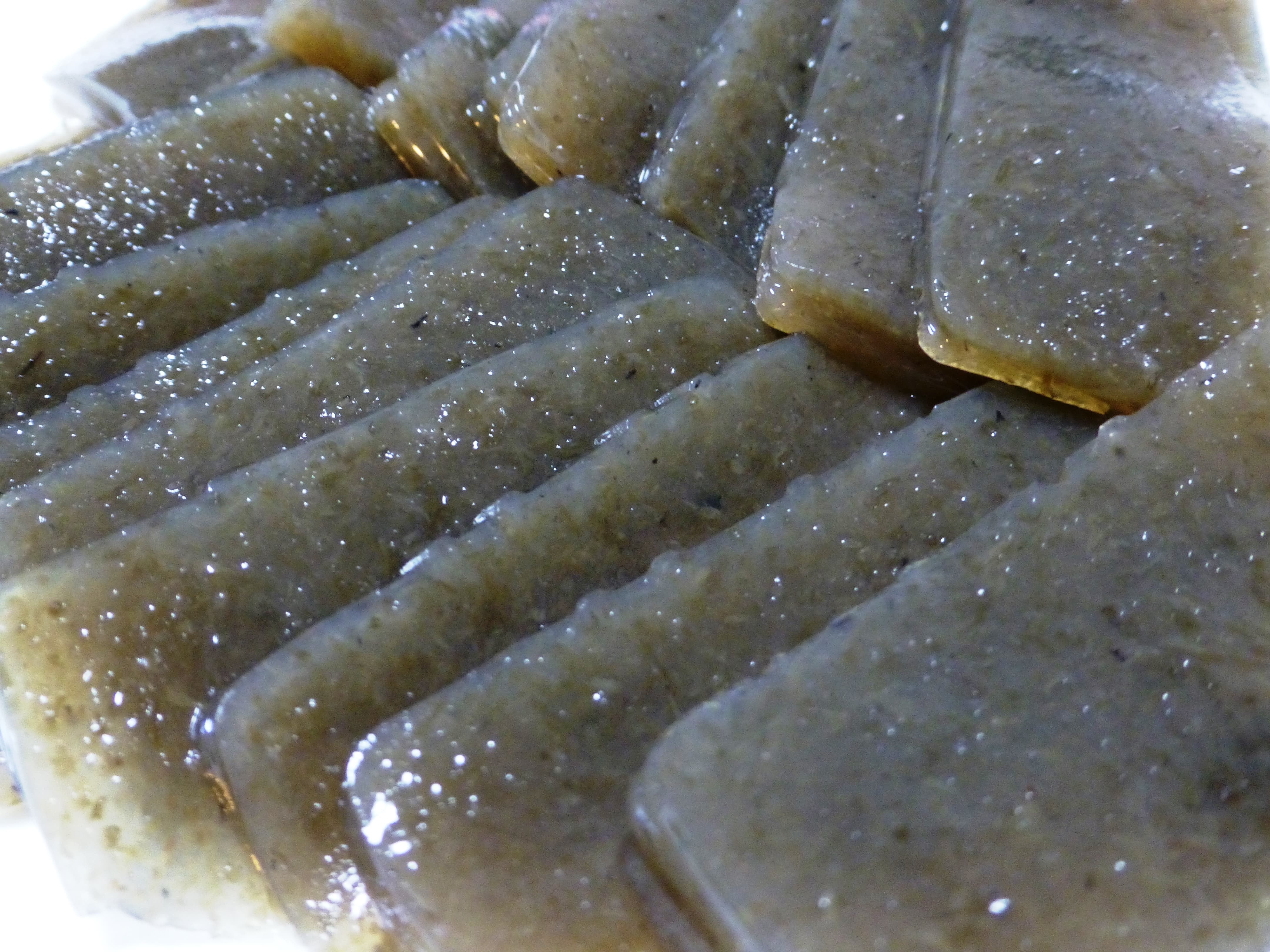 写真は信州・池田町のスーパーマーケットで販売されている「えご」。盆、正月など帰省の人が多い時期やお祭りの時には乾燥させたえご草も販売されます。安曇野の人たちは自分の家で「えご」を作って食べます。海の人が伝えなければこのような食文化は山国には継承されませんよね。いったい誰がどこから伝えたのでしょう?