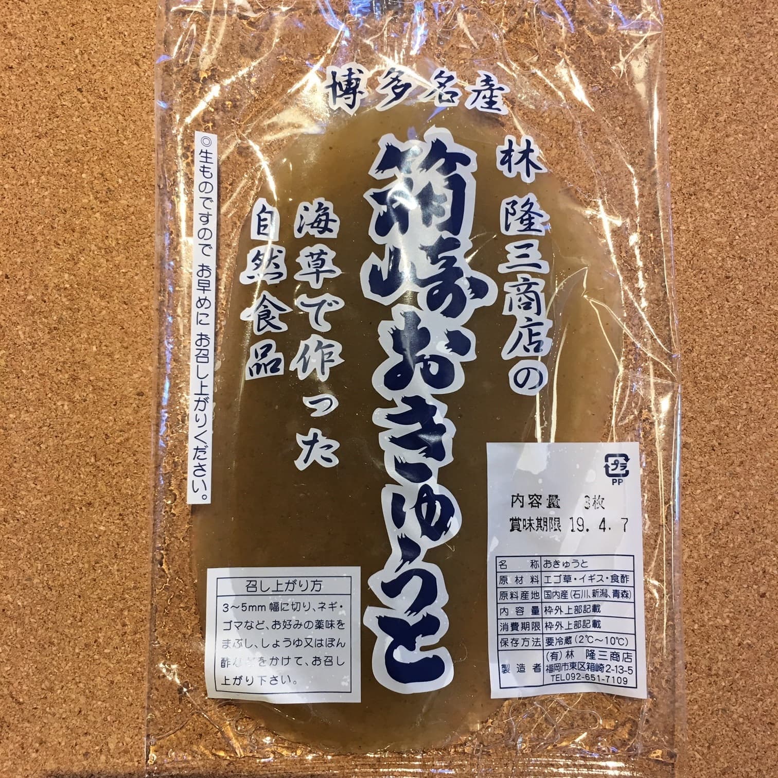 さて、前回穂高神社と同じ海神様を祀っている福岡(博多)の話をいたしました。なんと、博多にもえご草を食べる習慣があるのです。その名は「おきゅうと」。博多出身の人は誰もが知っている食品です。箱崎(はこざき)では今でもえご草からおきゅうとを作っています。昭和30年代にはおきゅうとのふれ売りが残っていました。