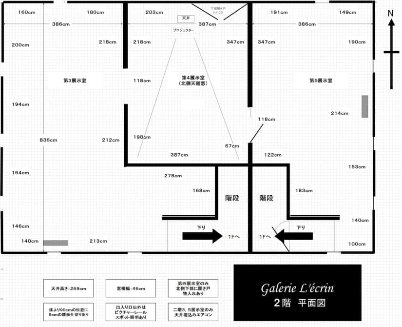 第3展示室・第4展示室・第5展示室の合計壁長は60メートルです
